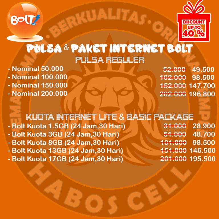 Penyedia layanan pulsa murah online, kuota internet hingga pln all operator terpercaya. Harga paket internet super bonus bolt! Kini kian mudah dengan adanya aplikasi traveloka. Paket internet super flex adalah sebuah paket internet bolt super 4g lte yang bisa digunakan 24 jam tanpa syarat. Ada paket internet ultra combo mulai 15 gb. Berbicara mengenai paket internet dari bolt super 4g, anda bisa memilih salah satu dari 4 paket berikut ini ada banyak sekali cara membeli atau aktivasi paket internet dari provider bolt. Harga dan info paket bolt super 4g kebutuhan internet di indonesia kini semakin tinggi tidak heran jika banyak pesaing.